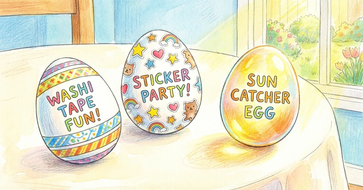 The Setup: Clear the table and hard-boil a dozen eggs. Grab a variety of washi tape rolls. I like to stick to a cohesive color palette—maybe pastels and bright yellows—but honestly, the more chaotic the mix, the more fun it is for the kids.